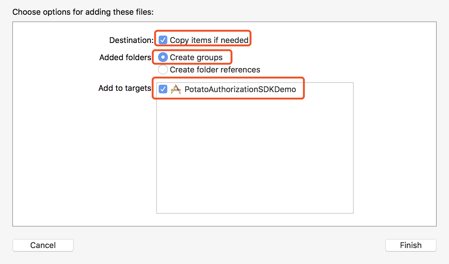 1 Go to the official website to download the SDK, add all the files in the PotatoAuthorizationSDK folder to the project, the files in the folder need to be put together, as shown below: